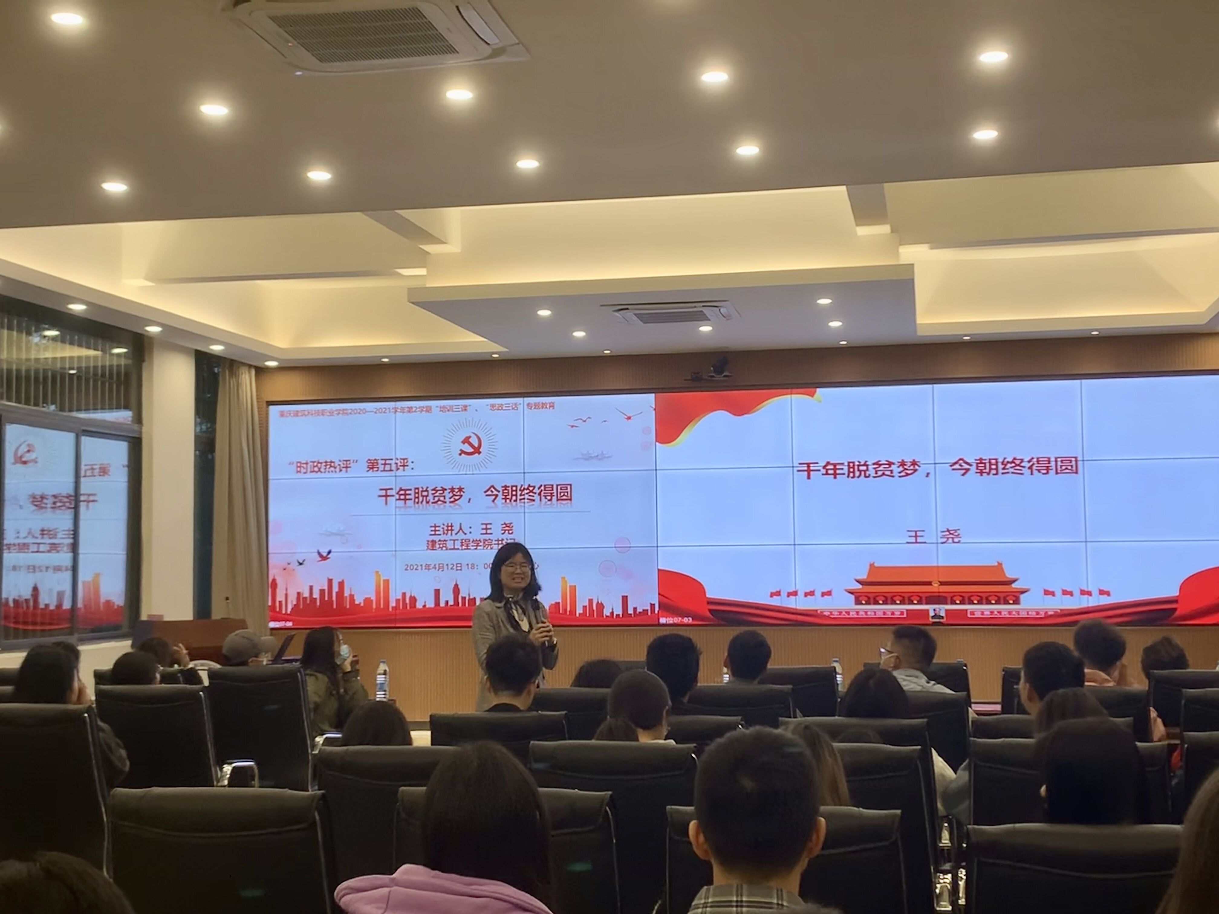 为贯彻落实全国脱贫攻坚总结表彰大会上讲话精神——我国脱贫攻坚战取得了全面胜利,巩固拓展脱贫攻成果,2021年4月12日,Kaiyun官方网站登录入口党委学工部在大数据中心举办了“时事热评”第五评:千年脱贫梦,今朝终得圆的专题讲座。此次讲座由建筑工程学院书记王尧主讲,学校副校长李果、学工部部长冉小平、智能制造工程学院书记齐云霞、辅导员代表、学生骨干代表共同参加。