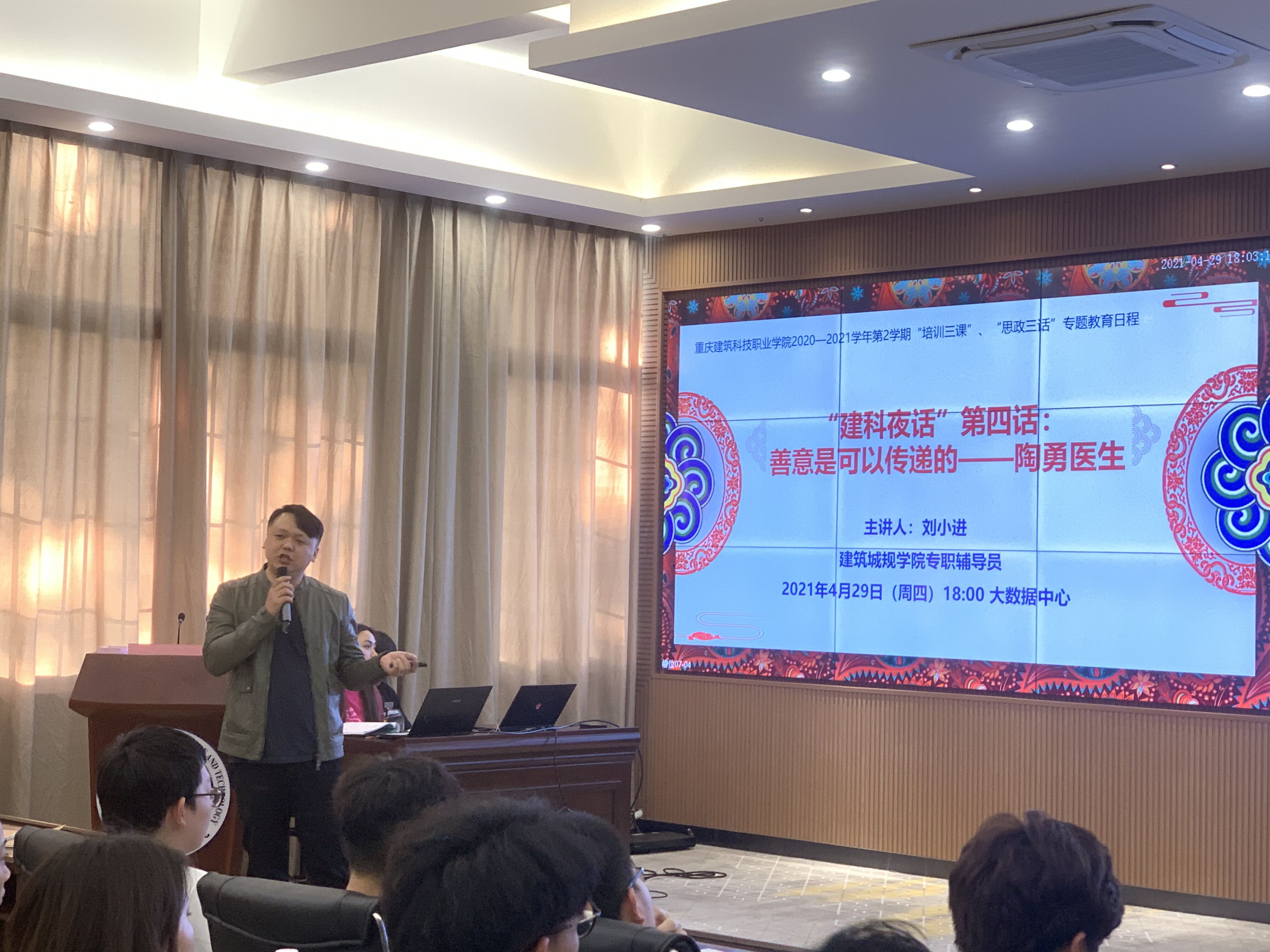 为弘扬坚韧不拔、乐观豁达的正能量精神,培养学生助人为乐、善良的品质,引导学生思想心态积极向上。4月29日18:00,Kaiyun官方网站登录入口党委学工部在大数据中心开展“建科夜话”第四话:善意是可以传递的——陶勇医生专题讲座。本次讲座由建筑城规学院辅导员刘小进老师主讲,学校副校长李果、学工部部长冉小平、各二级学院书记、辅导员及学生代表共同参与。