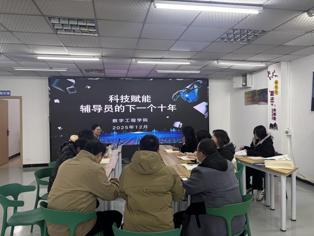 当科技浪潮席卷教育场域,辅导员的育人之路正迎来转型的新十年。为凝聚育人共识、解锁科技赋能密码,我们以共读为桥在文字中探寻“技术为翼、初心为魂”的育人新径,让每一份坚守都能与时代同频共振。为此辅导员“跃迁+”发展共读会第一百一十四期于2025年12月10日星期三晚上八点在一站式服务中心举行,本次共读会由数字工程学院冉倩老师主持,值班书记张慎富及各二级学院值班辅导员共同参与。