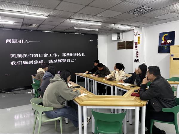 首先,主持人结合辅导员日常工作场景,梳理出事务性工作烦琐、突发事件冲击、重点学生问题复杂、职业发展迷茫四大核心困境,引发在场辅导员的深度共鸣。随后,又围绕班杜拉的自我效能感理论展开系统解读,明确自我效能是个体对自身能否成功完成任务的主观信念,其对行为选择、努力程度与抗挫折韧性的预测作用,甚至超越实际能力。同时,详细剖析了高、低自我效能感辅导员的工作状态差异,帮助大家厘清自我效能对职业成长的核心影响。在交流研讨环节,辅导员们结合自身育人工作实际踊跃分享,围绕学生产教融合指导、日常事务管理等场景,交流了工作中的焦虑与自我怀疑,就“如何调试低自我效能感状态”展开热烈讨论,在思想碰撞中分享了自我调节、压力疏解的实用方法,进一步深化了对自我效能感理论的实践认知,为后续优化工作状态、提升育人效能奠定了思想基础。