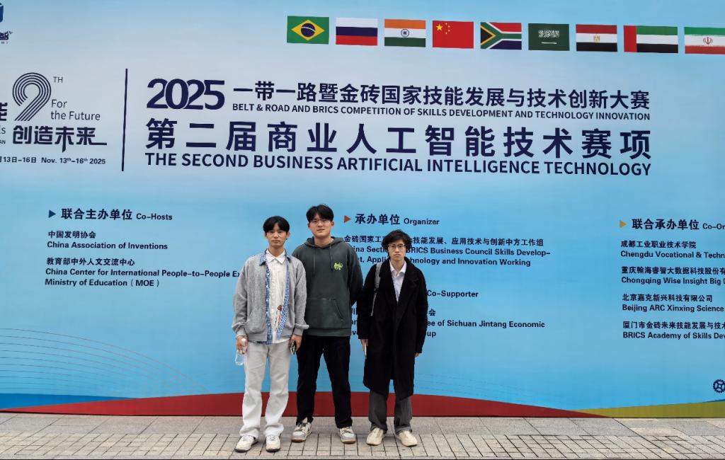2025年一带一路暨金砖国家职业技能大赛之第二届商业人工智能赛项于2025年11月在四川成都进行总决赛。本次学校参赛团队由24级大数据技术专业的三名学生构成,整个商业人工智能赛项分为三个板块,第一板块是数据处理,第二个板块是数据分析,第三个板块是数据可视化,按照每个学生的技术特长分配模块,在赛前进行了针对性的训练。