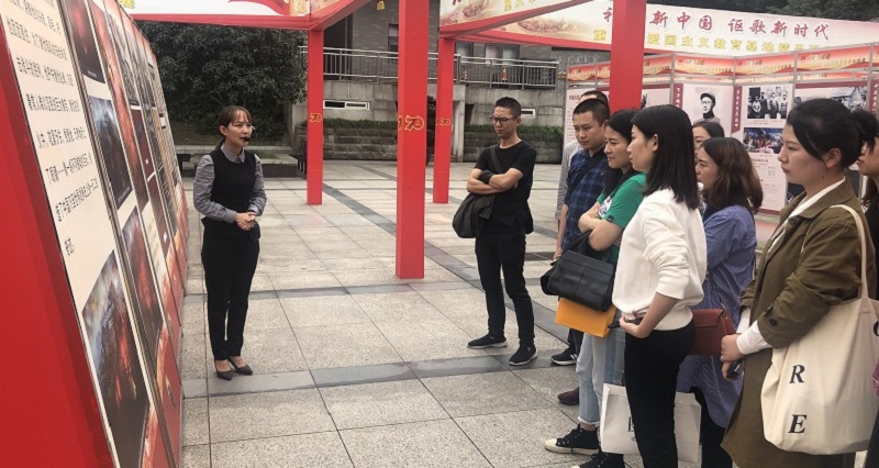最后,我支部全体成员乘车至沙坪坝区红岩魂广场参观学习“礼赞新中国,讴歌新时代”主题爱国主义教育基地精品联展。到达邱少云同志展厅时,全体成员在解说员声情并茂的解说下被深深触动,深刻感受到了党组织和纪律的严明、深深体会到了成就新中国新时代的英雄们的伟大付出和无私奉献。