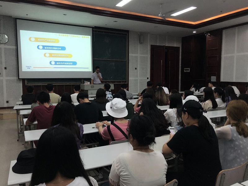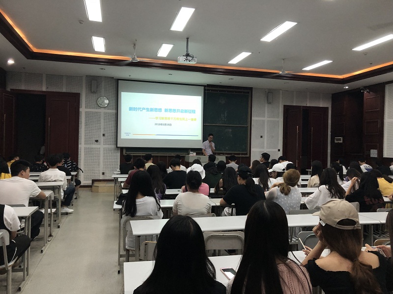 新思想引领新青年,激励学生具有不忘初心,心存高远的精神,弘扬党的十九大精神。我系2017级于2018年6月18日晚上八点,在笃学楼3405举行了以“新时代产生新思想,新思想开启新征程”为主题——学习新思想千万师生同上一堂课活动,此次课程由金融系党支部副书记张运来老师主讲。