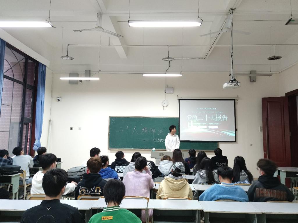2023年3月17日,数字工程学院2021级物联网应用技术(专本贯)一班在笃学楼3306举行学习贯彻二十大精神宣讲活动。活动由2021级物联网应用技术(专本贯)一班团支书李长陆主持。班级全体同学参与了此次活动。