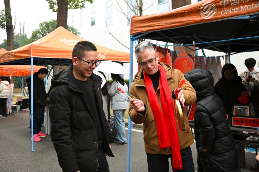 不少师生特意带着提前构思的新春寄语前来,与书法爱好者们交流创作思路,现场洋溢着文化交流的浓厚氛围。活动尾声,党员服务站数字工程学院分站的同学们还将剩余的春联与福字赠予路过的师生,让这份墨香年味传递到校园的各个角落。
