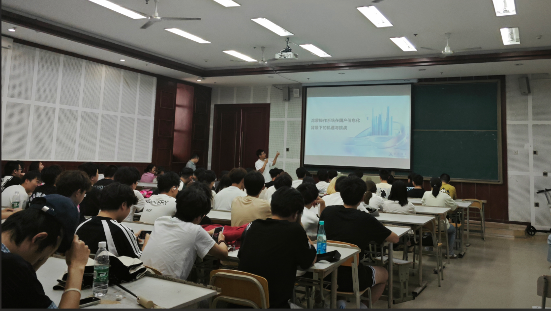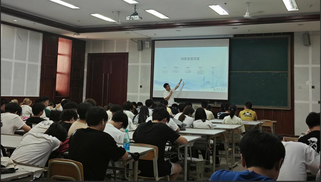 在讲座中,卢有烨专家深入浅出,先介绍了鸿蒙系统诞生的背景,点明其在万物互联时代为构建全场景智能生态的重要意义。紧接着阐述了鸿蒙系统的特点,如分布式软总线技术打破设备间的壁垒,实现无缝协同;微内核架构带来更高的安全性与稳定性等。同时,通过丰富案例展示了鸿蒙系统在智能家居、智能汽车、智能穿戴等多元领域的应用场景,让同学们直观感受到鸿蒙系统如何赋能生活,提升便捷性与智能化体验。