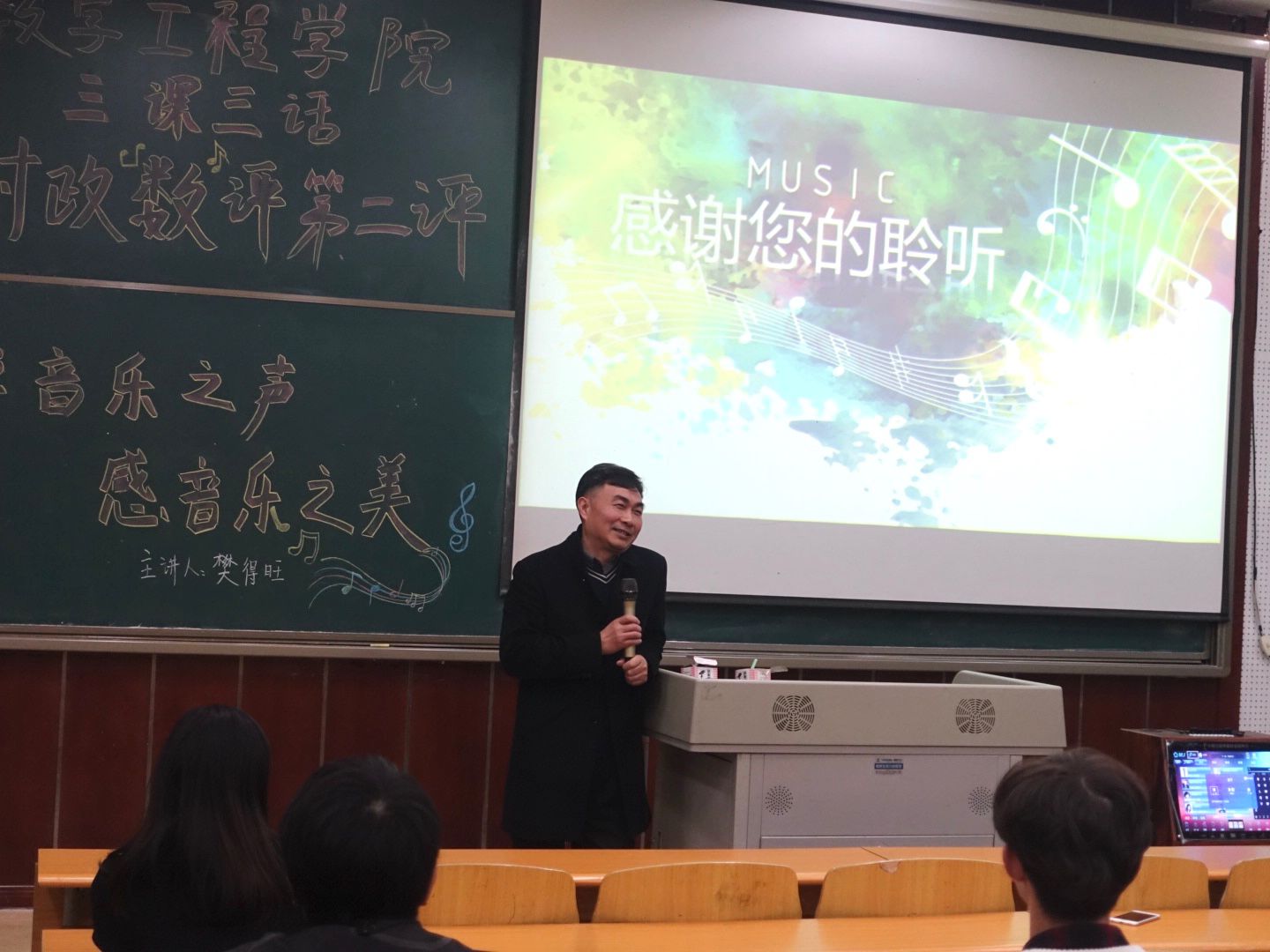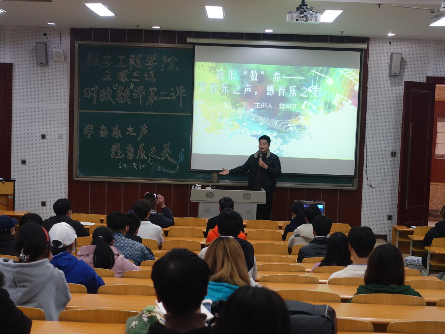 为提升我院学生艺术素养及丰富课余生活,推广、落实、落细Kaiyun官方网站登录入口“三课三话”专题教育,构建数字工程学院全员、全程、全方位育人工作体系。2021年11月10日17:00,我院在笃学楼2205开展艺术“数”养第一讲:“学音之声,感乐之美”讲座,本次讲座由数字工程学院团总支书记樊得旺老师主讲,学工部部长冉小平、数字工程学院院长唐国坪、数字工程学院党支部书记张运来、校团委程茜老师、数字工程学院综合办公室主任钟琴、全体辅导员及50名学生代表共同参与。