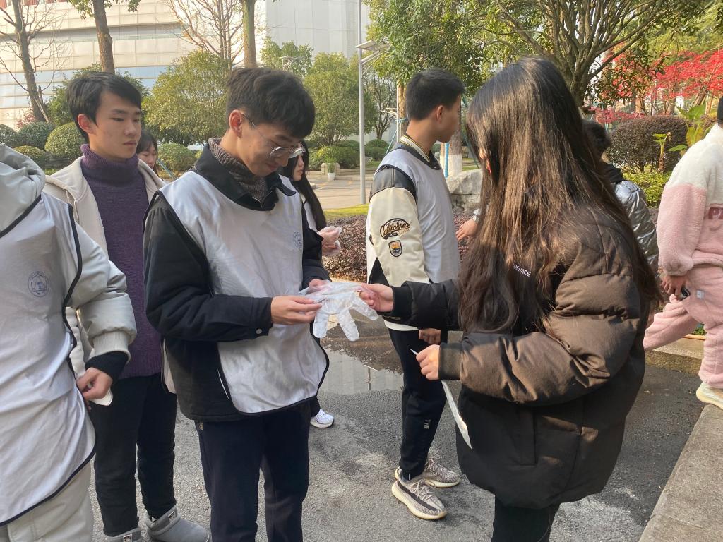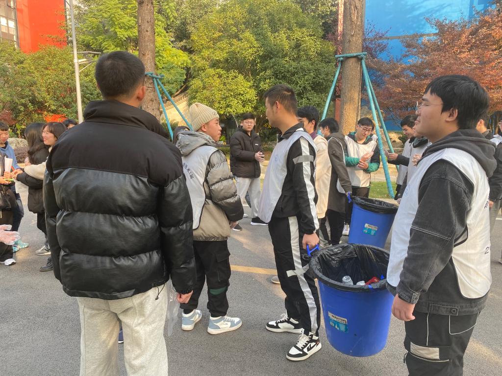 晨光正好,微风徐徐。下午三点半,同学们在F栋门口前集合,领取一次性手套以及垃圾袋,身着班级统一服装,沿着过道进行清理。本次活动的主要任务是捡拾校园内的白色垃圾、烟头、塑料垃圾等。活动中,队员们带好手套,手持垃圾桶,利用手中的工具对空地及操场的白色垃圾进行捡拾、分类和处理。草丛中、树枝上、角落里,同学们不放过任何一个角落,不怕脏、不怕累,哪怕是藏在花坛里的一个烟头,纸屑也被一一清扫出来,装进垃圾袋。最后,大家把不可回收的垃圾扔入垃圾箱,把可回收物品进行分类,统一收集运走。