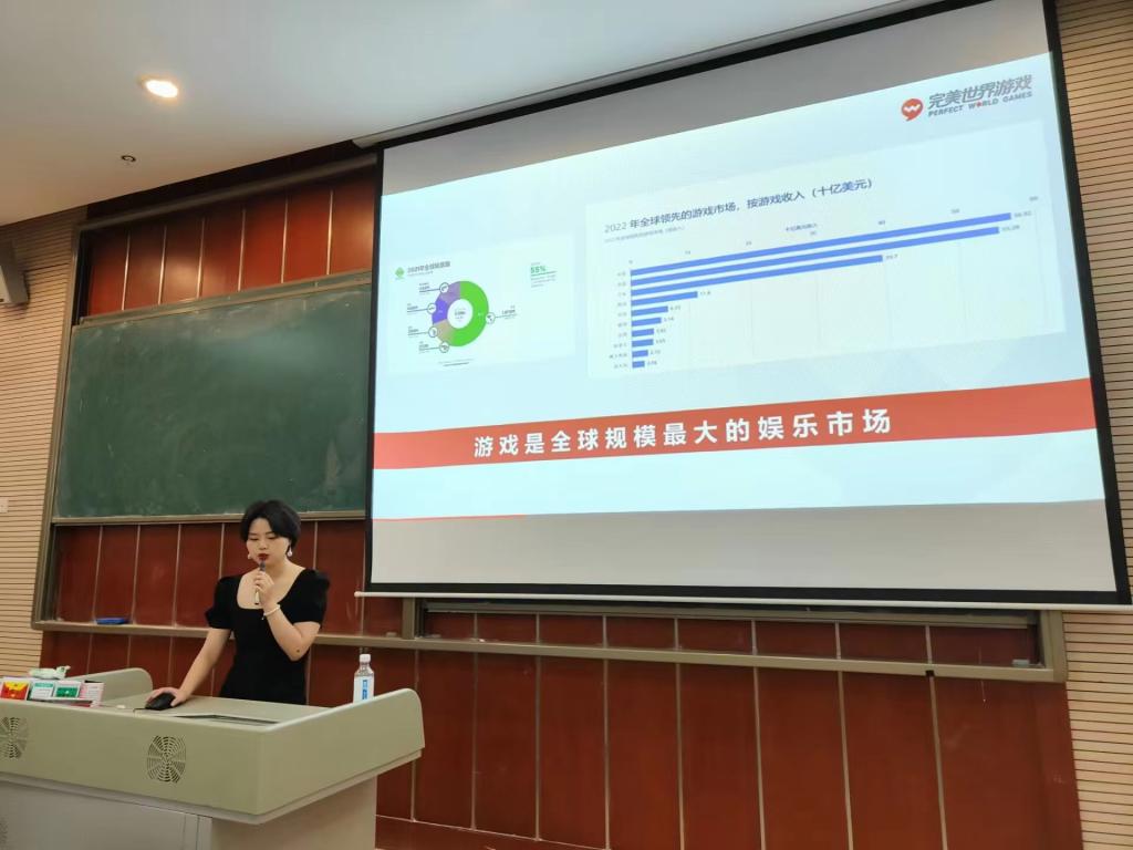 随后由重庆完美世界互动科技有限公司代表卢总为大家就目前市场情况、岗位与技术等做分享。先从公司简介、影视作品、就业岗位等方面进行了详细解读,让同学们更清楚地了解游戏开发行业就业形式,增强了大家对虚幻场景、动画模型、影视后期特效制作等方面的兴趣,大家积极活跃地与卢总进行交流。此外,卢总结合作品展示、就业案例分享以及培训学员学习感受,向同学们简要概述了企业招聘及用人的标准,着重讲解了岗位需求与就业技巧。同学们也积极的向老师提出疑问,现场气氛浓厚,同学们聚精会神,时而掌声雷动,时而笑声回荡。