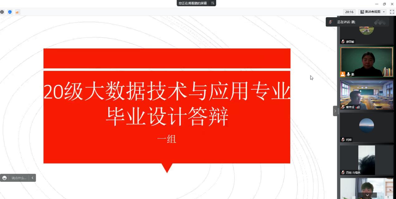 受疫情的影响,今年毕业设计答辩工作也面临前所未有的困难,为保证毕业设计答辩质量,大数据教研室根据当前的疫情形势召开教研室会议讨论毕业设计答辩工作,经过研讨,最终形成答辩方案。此外,大数据教研室老师还反复调试软件功能评估线上答辩的风险,并对学生如何进行线上答辩进行培训和指导,在教研室全体老师的不断努力和探索下,毕业设计答辩工作有条不紊地展开。