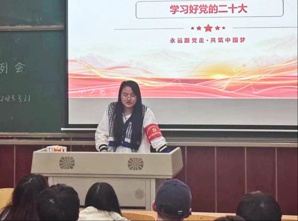 会上,党员服务站数字工程学院分站骨干牟春红对二十大会议内容进行了概述,说明了二十大召开的意义。她分别二十大主题十年来经历三件大事,以及全面建成社会主义现代化强国的战略安排等三个方面入手引导全体成员坚持“不忘初心跟党走”的行动,理解二十大精神的丰富内涵,切实肩负起新时代青年光荣职责。