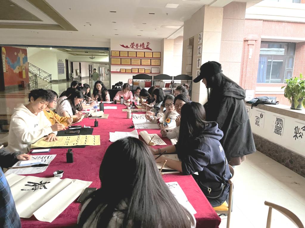 2023年11月1日于3512走廊开展首次书写活动,同学们继迎新会后齐聚一堂大家带着各自书法工具入坐。