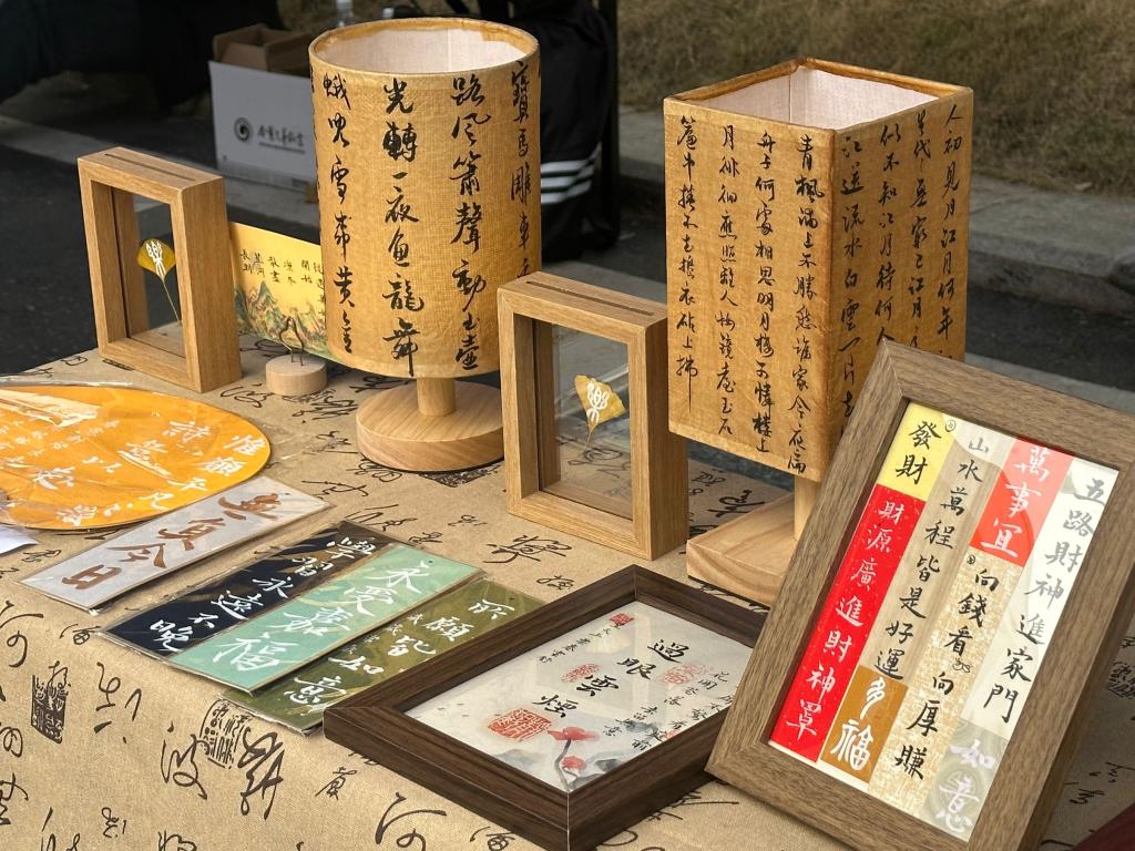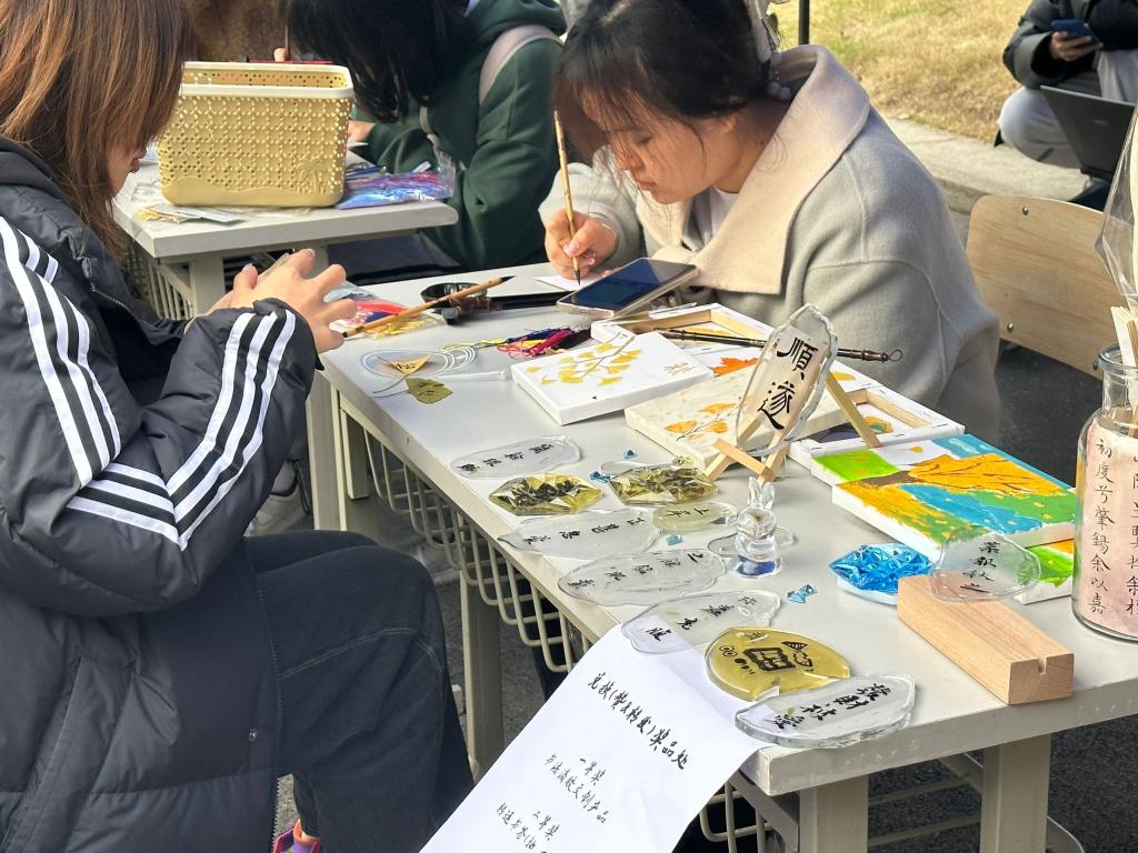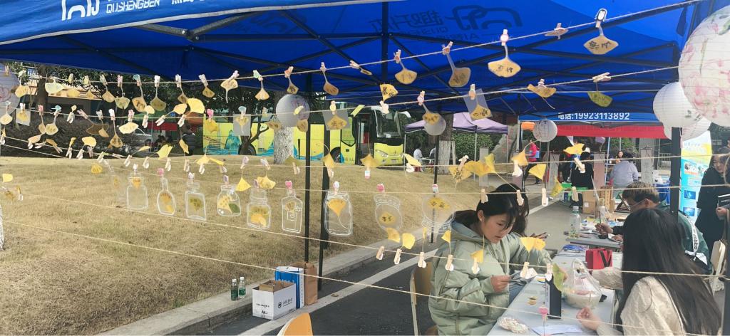 2023年11月22日星期三重庆建筑科技数字工程学院团总支和弘文书斋在A栋门口展开了以“杏叶传情癸卯金秋”为主题的书法活动