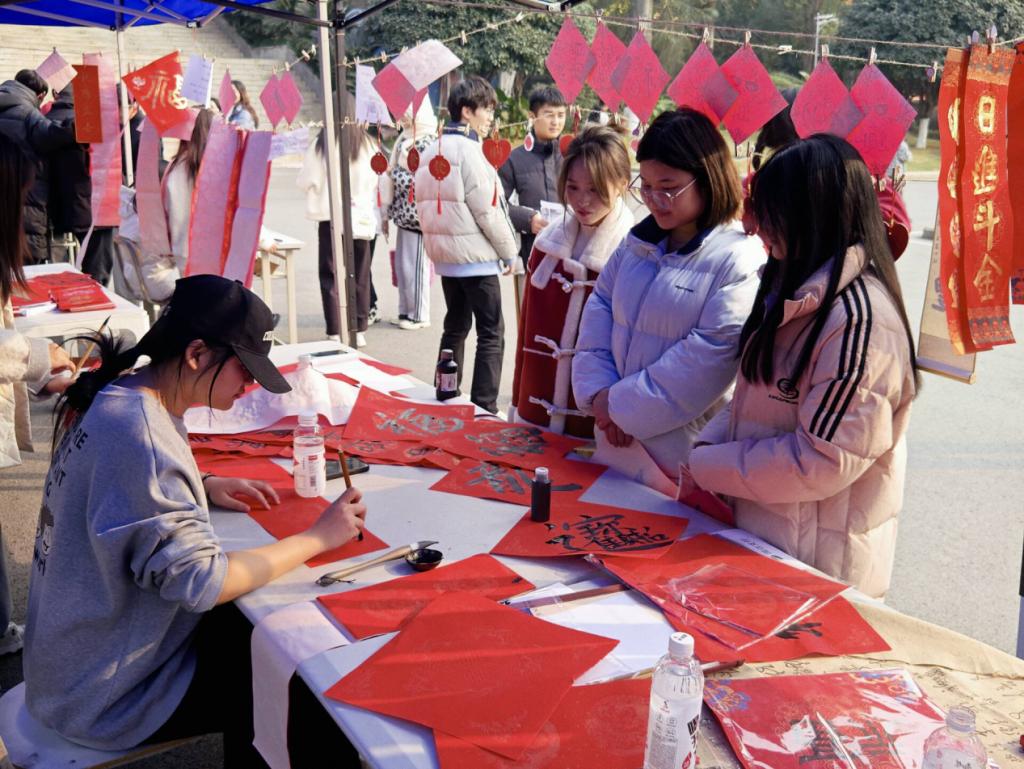新年将至,万家团圆,翰墨飘香,迎春纳福,为弘扬中华优秀传统文化,践行社会主义核心价值观,活跃校园文化氛围,同时表达对广大师生最诚挚的节日祝福。数字工程学院弘文书斋携院团总支学生会,党员服务站分站共同开展“笔墨迎春 新春送福”活动。