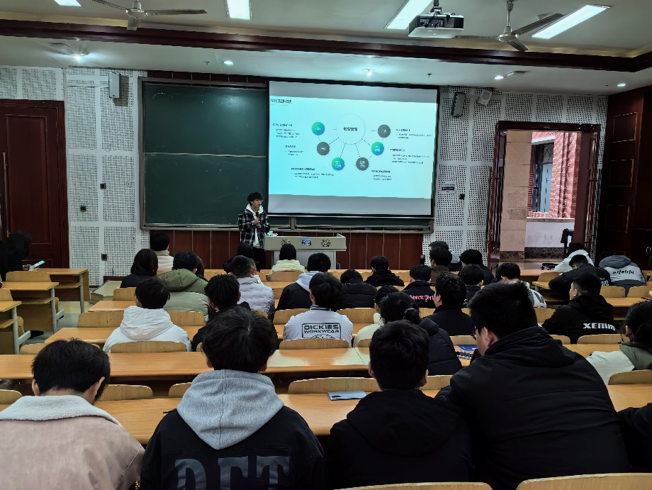 然后,企业负责人段雄工程师通过自动驾驶案例演示,从认识人工智能数据标注、智能自动驾驶数据标注简介、数据标注团队介绍、校内实践和人才发展规划四个方面为学生讲解本次产教融合数据标注项目。