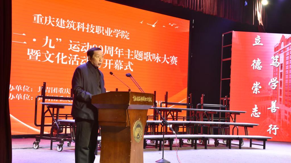 活动在师生有序入场中拉开序幕,现场座无虚席,暖场音乐流淌之间,洋溢着热烈而期待的氛围。主持人开场介绍后,校党委书记何光明致辞,重温“一二·九”运动的光辉历史,寄语青年学子传承红色精神。简短而有力的讲话,迅速点燃全场热情,为比赛奠定了激昂的基调。