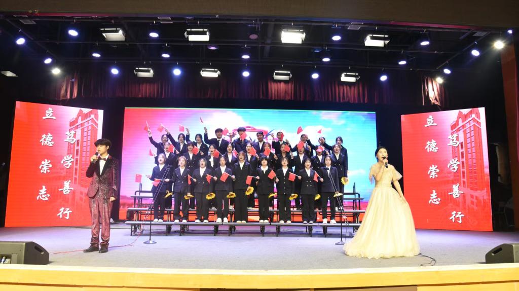 各学院代表队相继献唱:智能制造学院以《如愿》、《我的未来不是梦》唱出对美好未来的向往;智能建造学院借《走进新时代》、《堕》展现时代风貌与青春个性;智慧商贸学院通过《少年中国说》、《团结就是力量》抒发少年意气与团结信念;数字艺术学院以《没有共产党就没有新中国》、《我们都是追梦人》重温红色记忆、彰显青春担当;智慧康养学院用《歌声与微笑》、《爱我中华》传递温情与赤诚;校团委压轴演唱《我爱你中国》、《青春舞曲》,将全场气氛推向高潮。